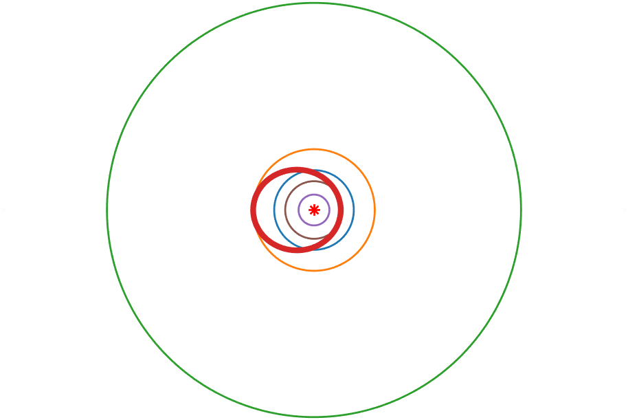| 穿越大行星轨道 | 金星,地球,火星 |
