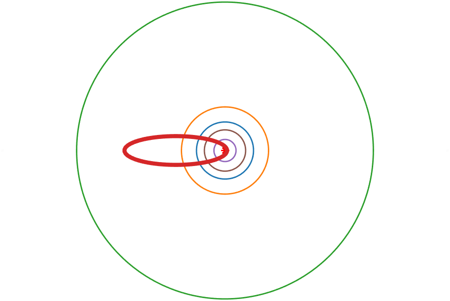 | 穿越大行星轨道 | 水星,金星,地球,火星 |