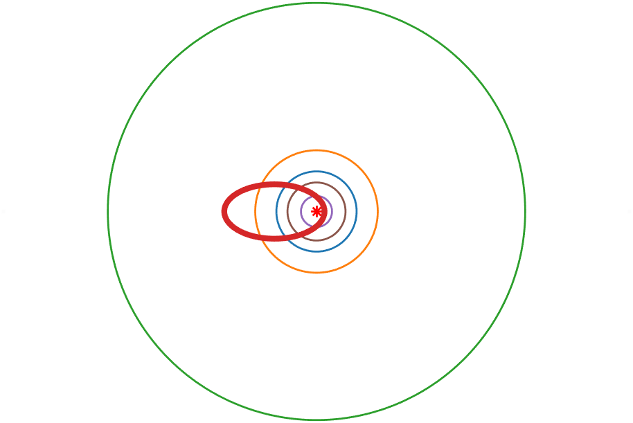 | 穿越大行星轨道 | 水星,金星,地球,火星 |
