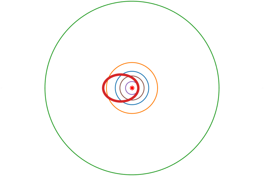| 穿越大行星轨道 | 水星,金星,地球,火星 |