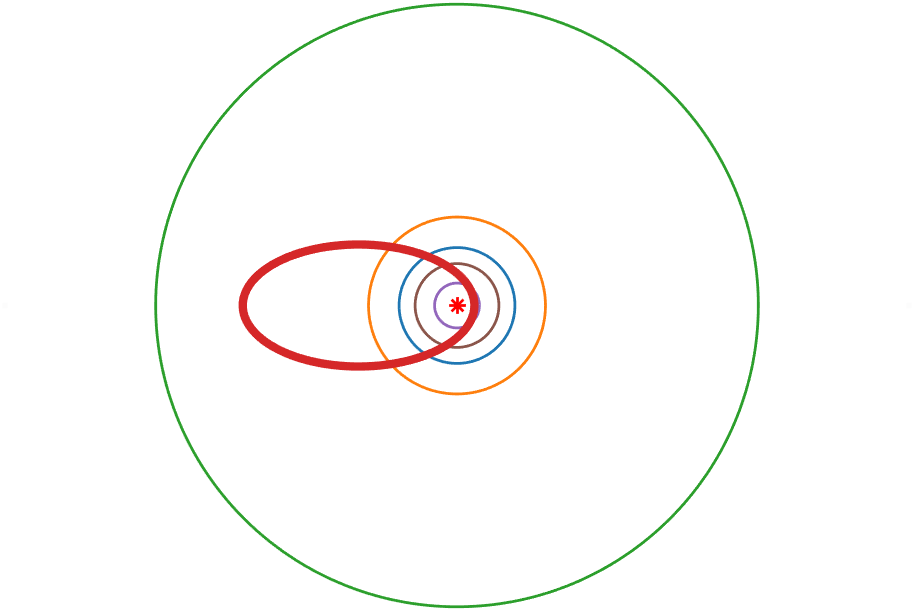 | 穿越大行星轨道 | 水星,金星,地球,火星 |