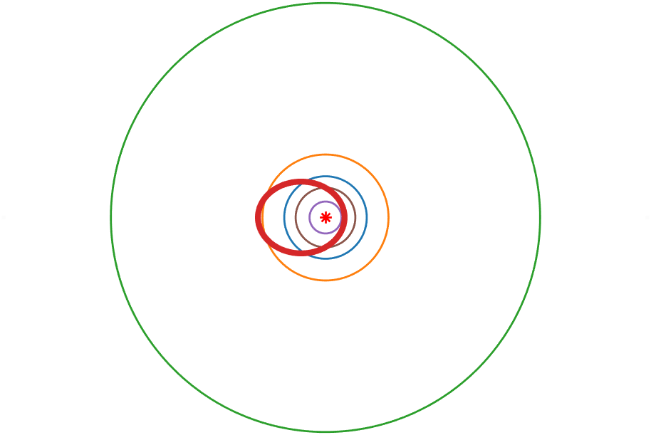 | 穿越大行星轨道 | 金星,地球,火星 |