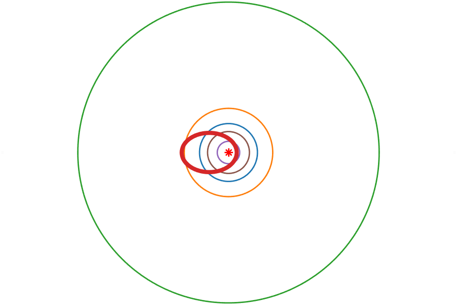 | 穿越大行星轨道 | 水星,金星,地球,火星 |