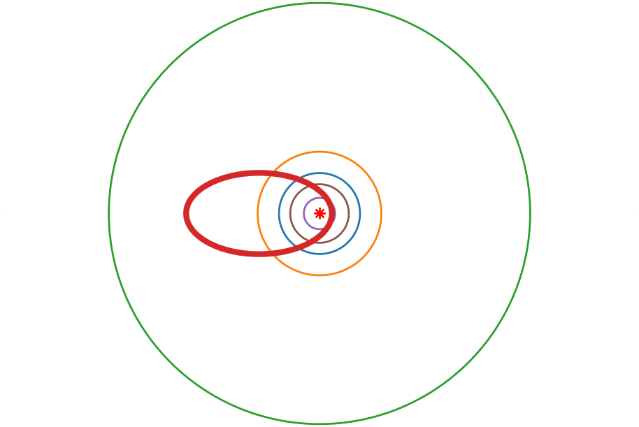 | 穿越大行星轨道 | 水星,金星,地球,火星 |