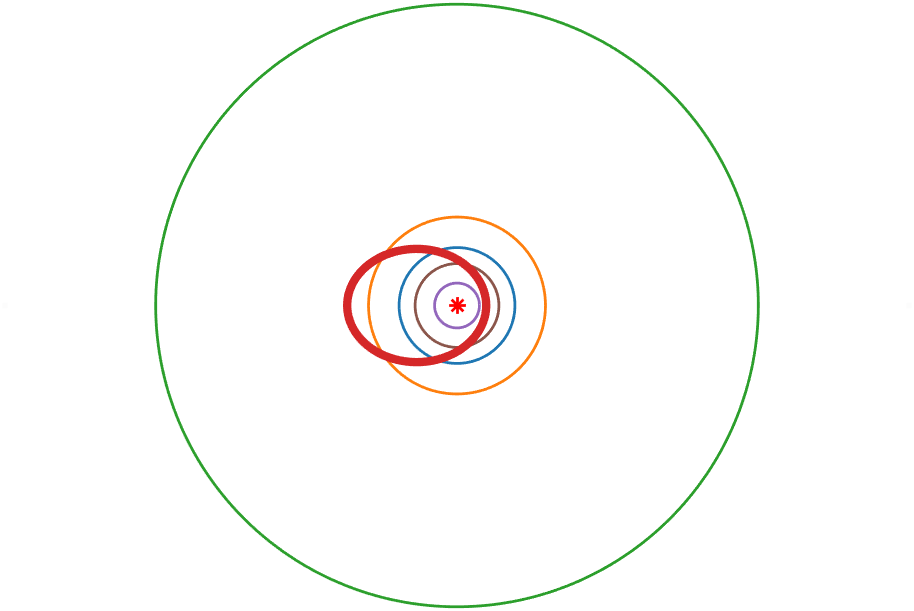 | 穿越大行星轨道 | 金星,地球,火星 |