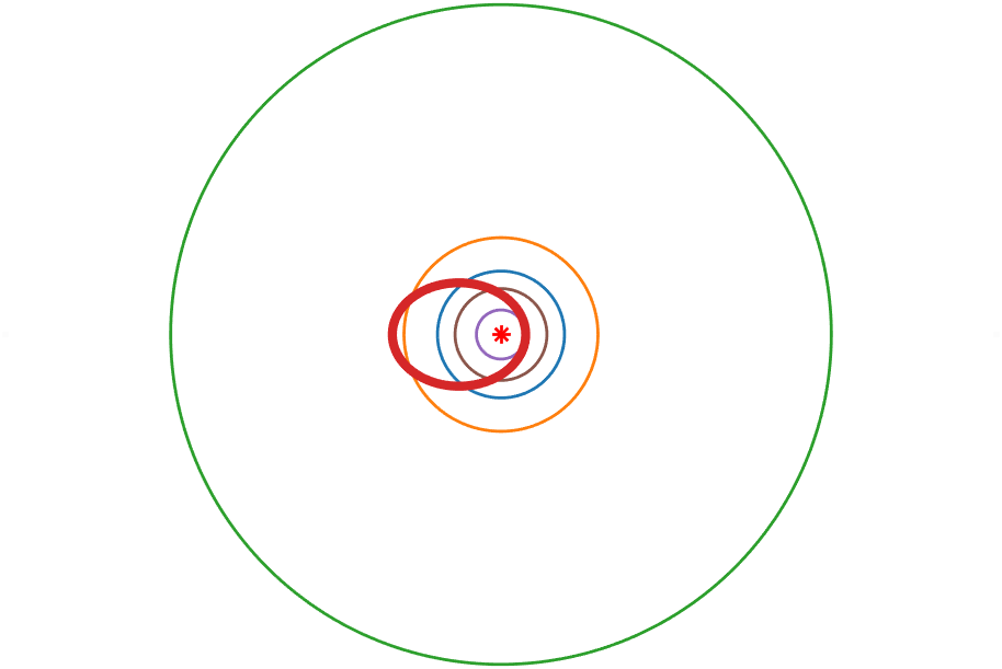 | 穿越大行星轨道 | 水星,金星,地球,火星 |