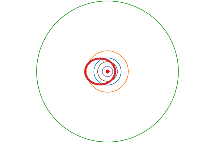 | 穿越大行星轨道 | 金星,地球,火星 |