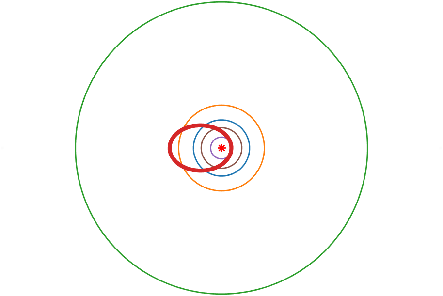 | 穿越大行星轨道 | 水星,金星,地球,火星 |
