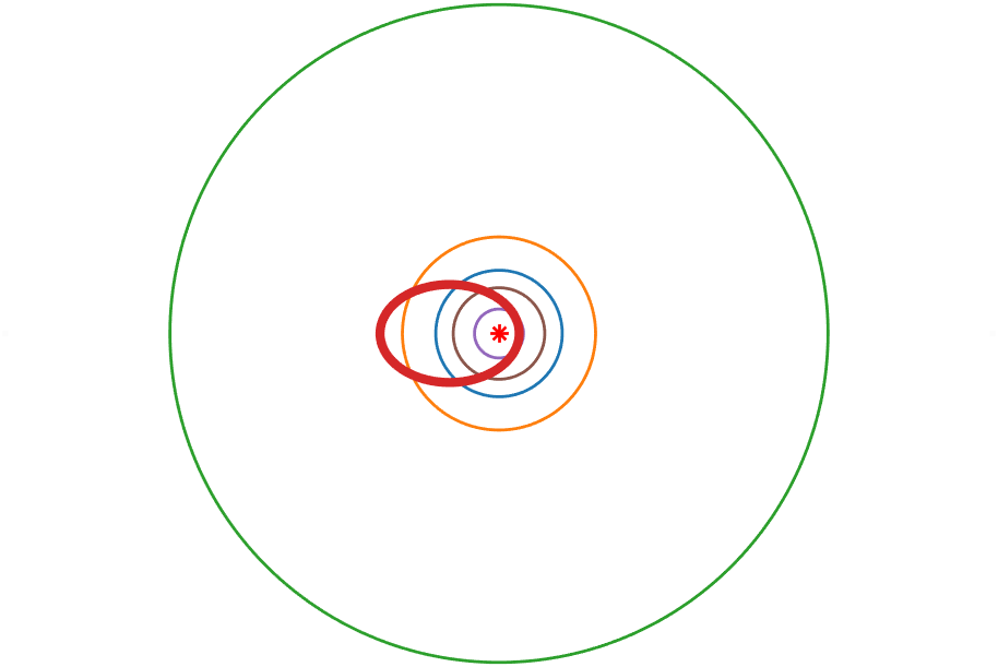 | 穿越大行星轨道 | 水星,金星,地球,火星 |
