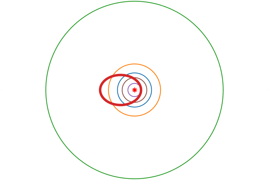 | 穿越大行星轨道 | 水星,金星,地球,火星 |