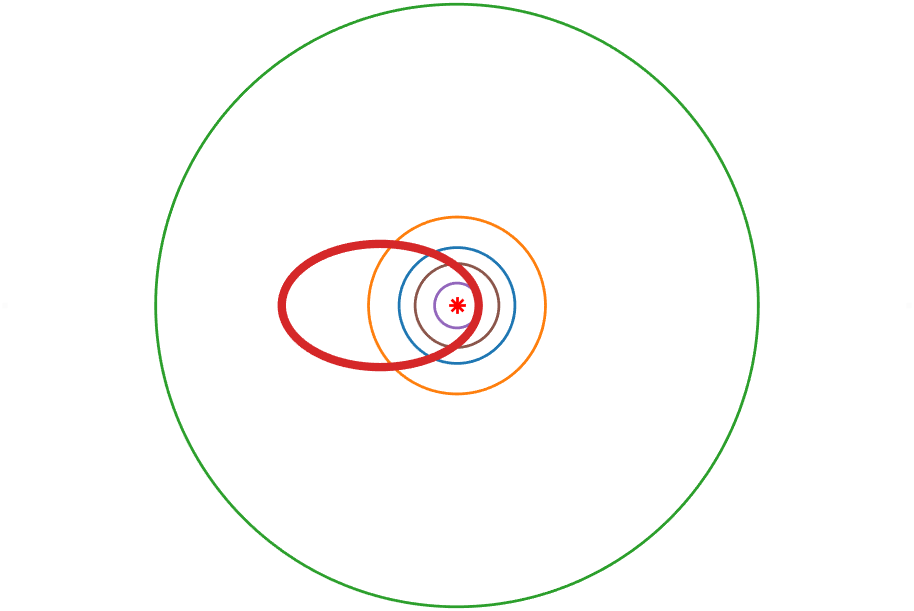 | 穿越大行星轨道 | 水星,金星,地球,火星 |
