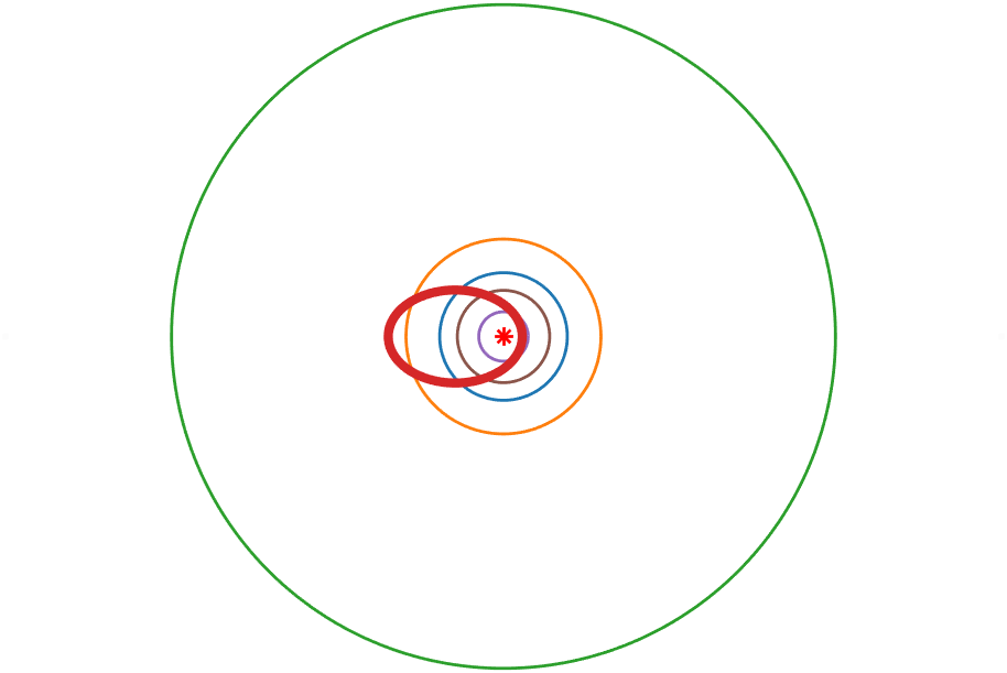 | 穿越大行星轨道 | 水星,金星,地球,火星 |