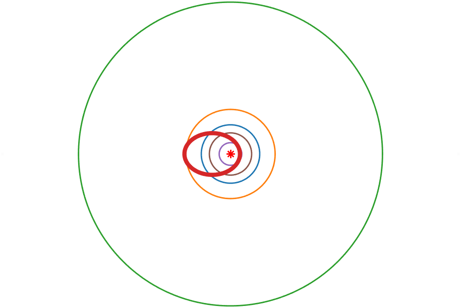 | 穿越大行星轨道 | 水星,金星,地球,火星 |