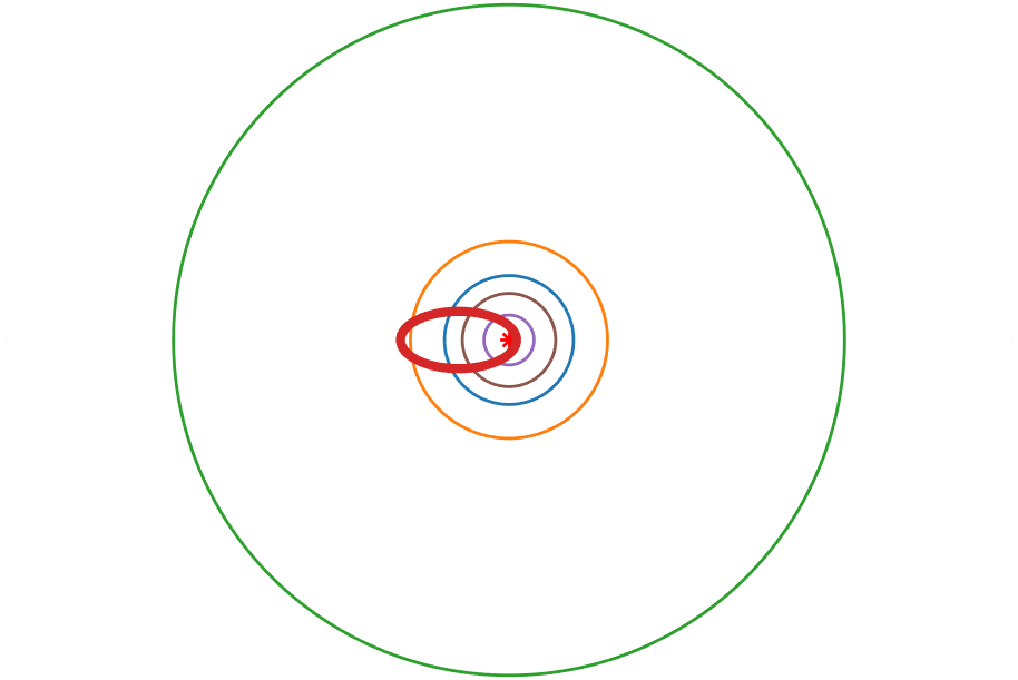 | 穿越大行星轨道 | 水星,金星,地球,火星 |