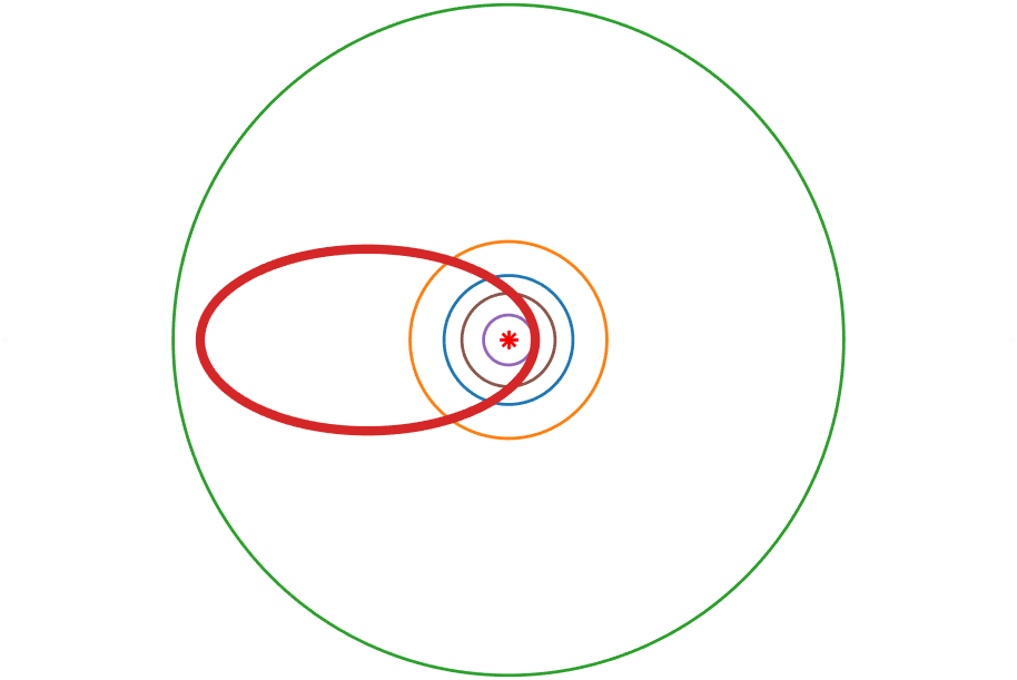 | 穿越大行星轨道 | 金星,地球,火星 |