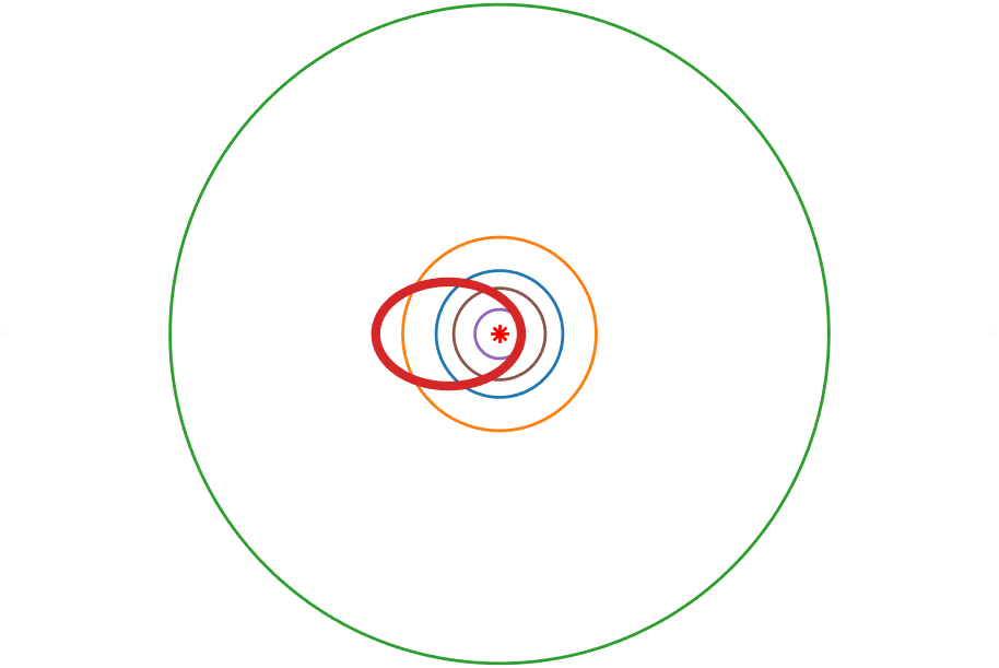 | 穿越大行星轨道 | 水星,金星,地球,火星 |