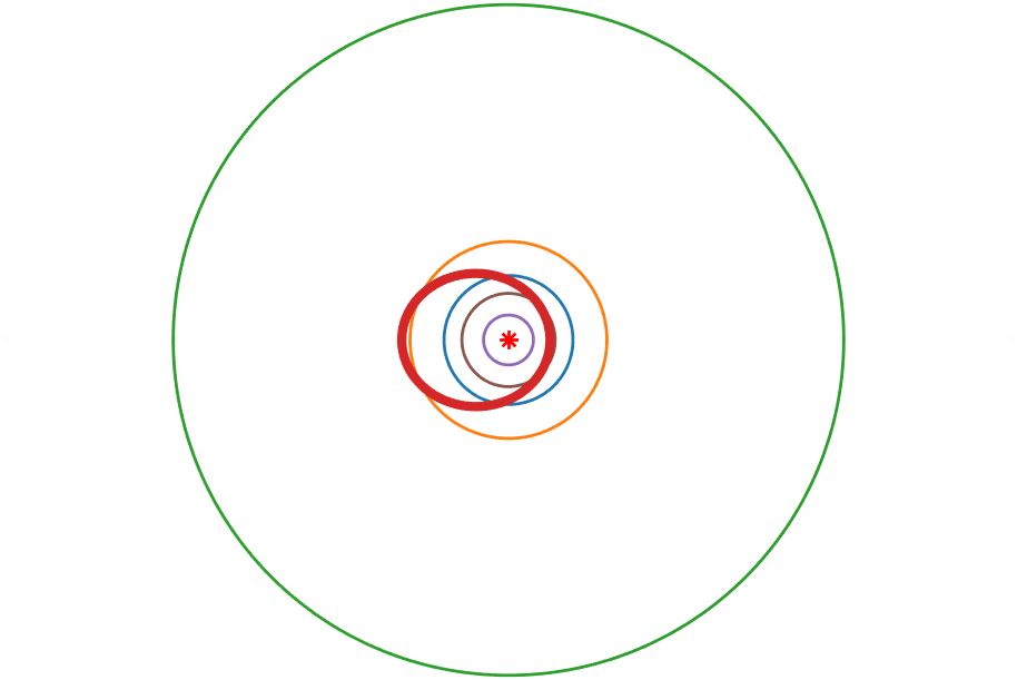 | 穿越大行星轨道 | 金星,地球,火星 |