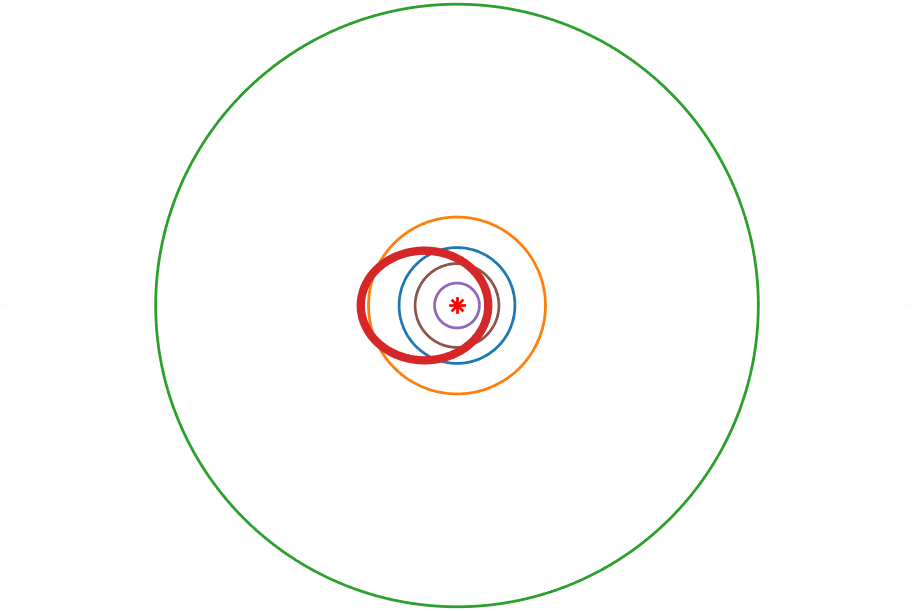 | 穿越大行星轨道 | 金星,地球,火星 |