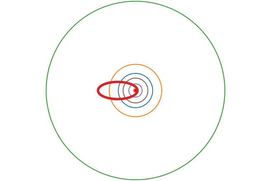 | 穿越大行星轨道 | 水星,金星,地球,火星 |