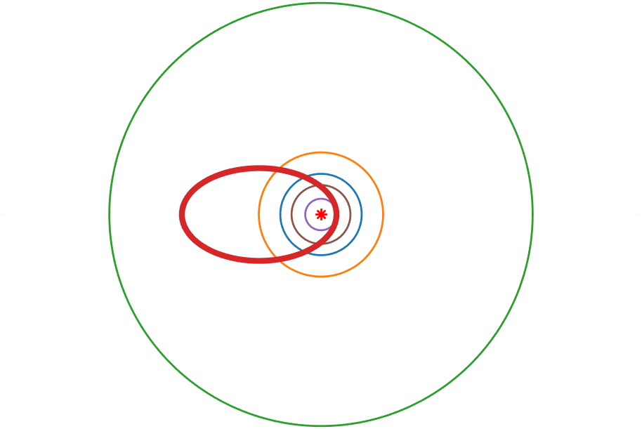 | 穿越大行星轨道 | 水星,金星,地球,火星 |