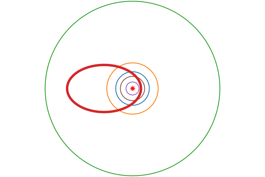 | 穿越大行星轨道 | 金星,地球,火星 |