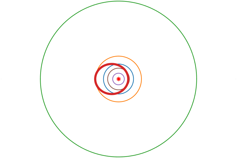 | 穿越大行星轨道 | 金星,地球,火星 |