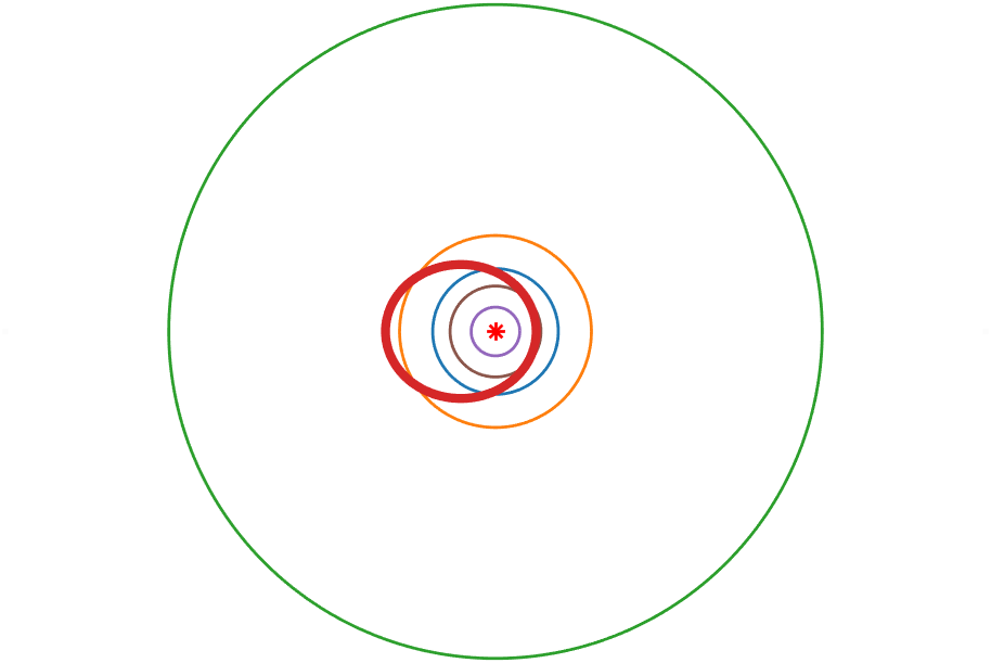 | 穿越大行星轨道 | 金星,地球,火星 |