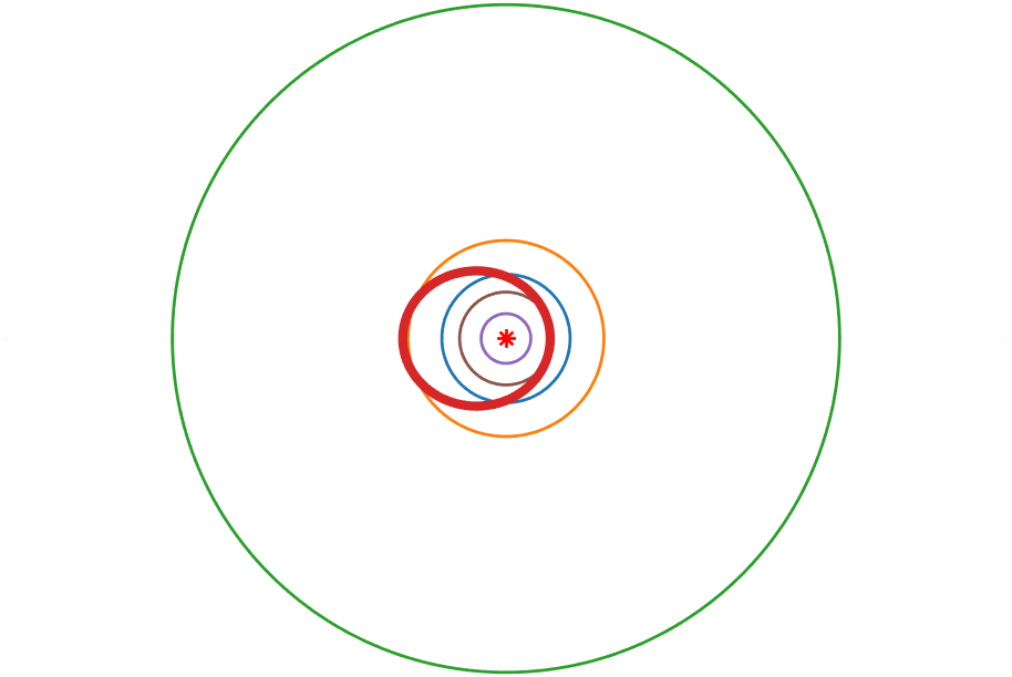 | 穿越大行星轨道 | 金星,地球,火星 |