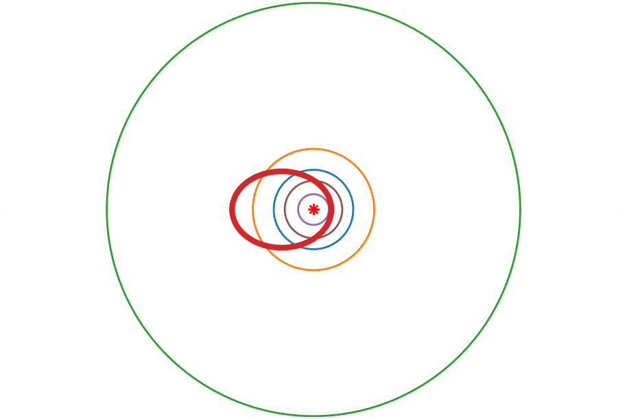 | 穿越大行星轨道 | 金星,地球,火星 |