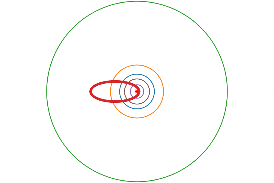 | 穿越大行星轨道 | 水星,金星,地球,火星 |