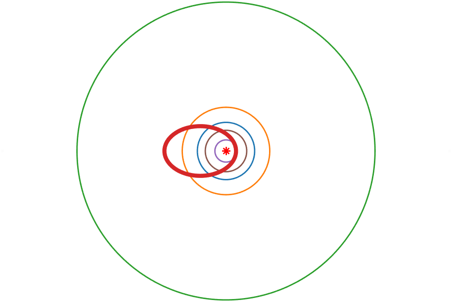 | 穿越大行星轨道 | 水星,金星,地球,火星 |